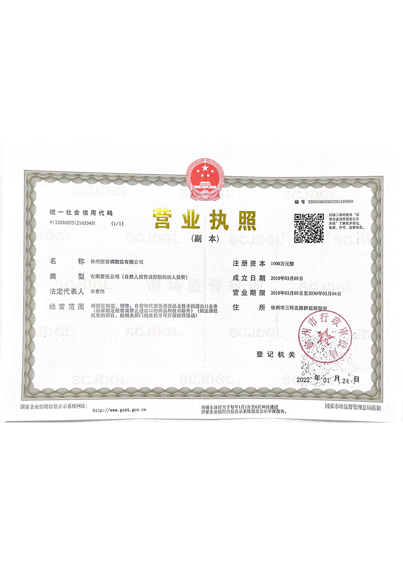 恒世磷酸鹽營業(yè)執(zhí)照
